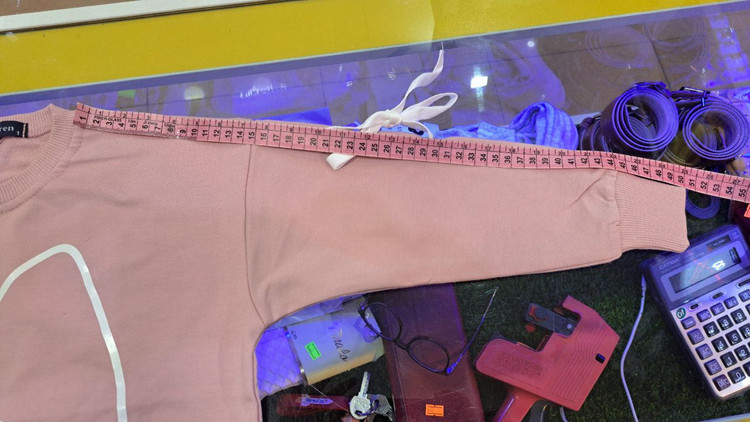 اندازه ی آستین از کنار یقه گرفته شده