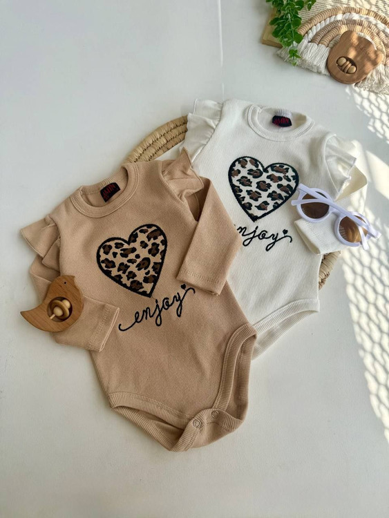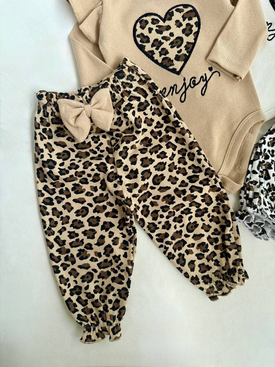 ست سه تیکه بادی سرشانه چیندار قلبی ،شلوار چیندارپلنگی و هد پاپیونی